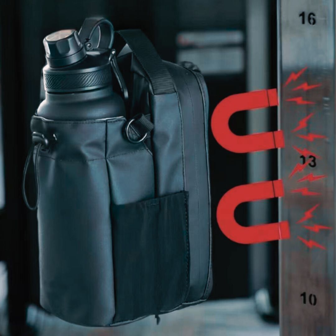 Die MagStark™ ist eine einzigartig designte Tasche mit integrierter Magnetrückseite, die sich an magnetischen Oberflächen wie Fitnessgeräten befestigen lässt. Ideal, um Flasche und Essentials sicher und griffbereit beim Training oder unterwegs zu halten.